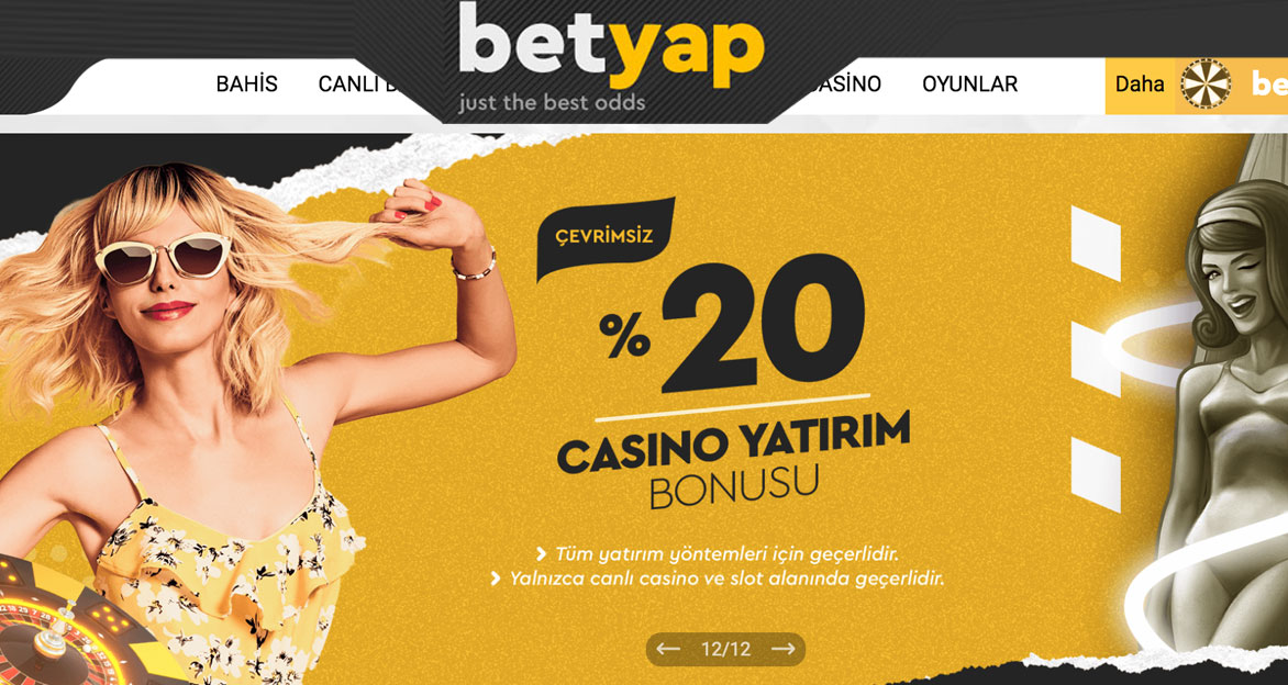 Betyap.com en son giriş Casino sitesinin en çok olumlu yorum aldığı konular arasında bahis oranları ve bonus seçenekleri yer almaktadır. Casino Giriş Adresi sitesinde oyun severler canlı casinodan, spor bahislerine kadar pek çok alanda oyunlarını oynamaktadır.